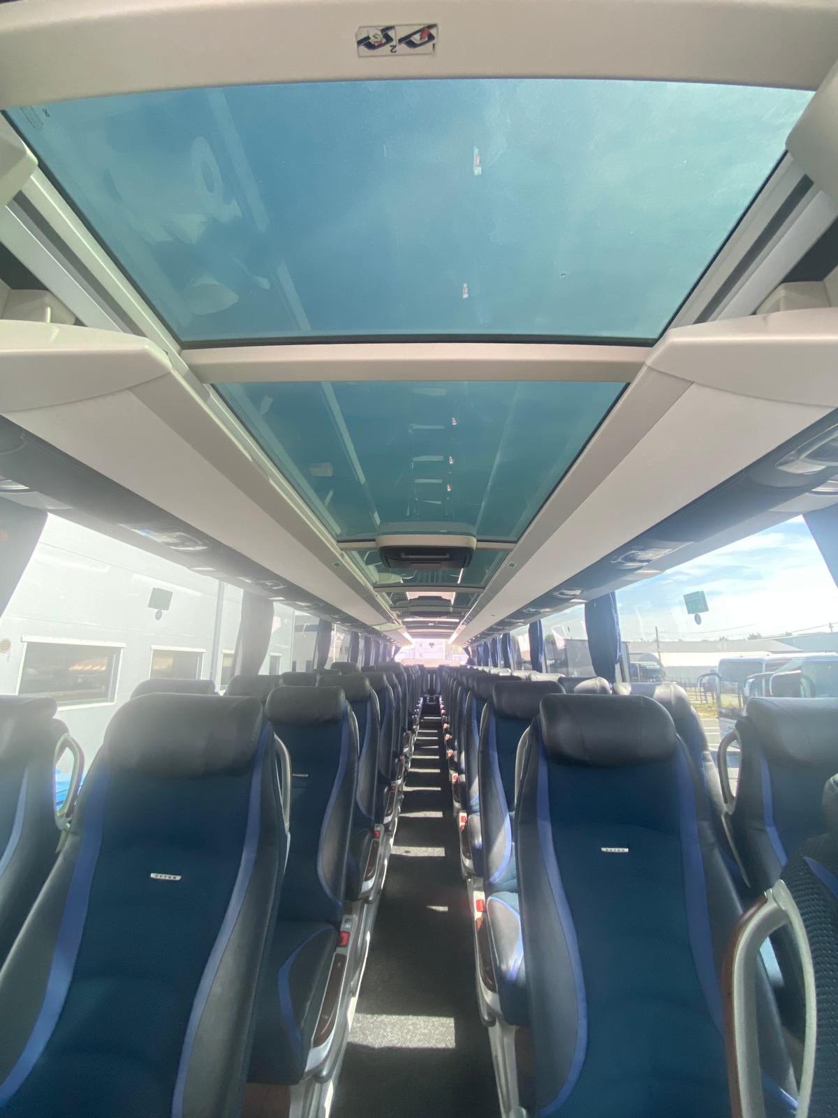 To pojazd, który łączy w sobie elegancję, komfort i najwyższy poziom bezpieczeństwa. Na pokładzie znajduje się 54 wygodnych foteli Voyage Ambassador, przestronny bagażnik, lodówka, kuchnia pokładowa, toaleta oraz system multimedialny z monitorami, które umilą każdą podróż.